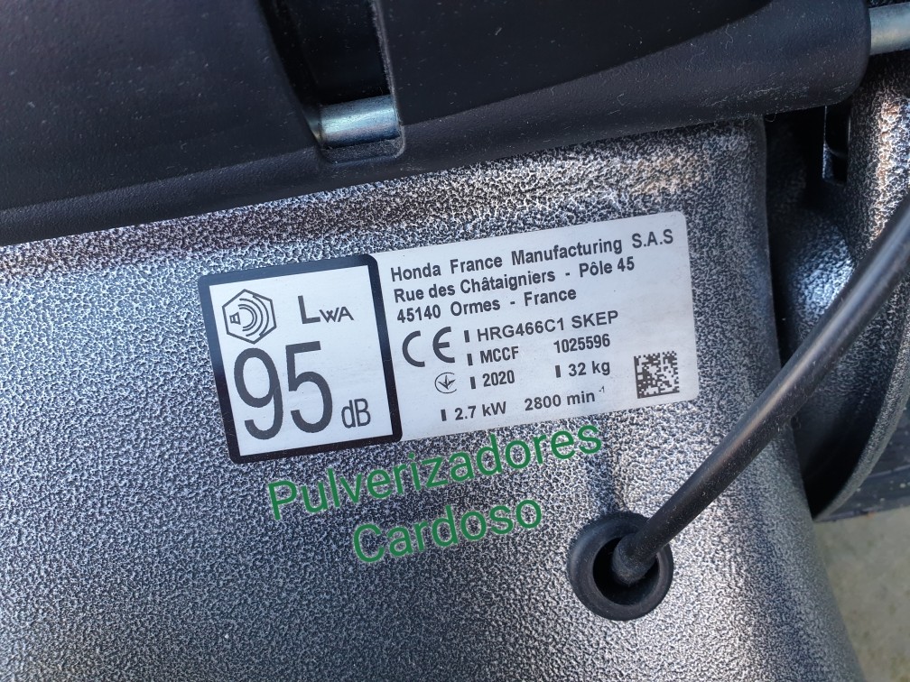• Etiqueta técnica de produto com informações da Honda em superfície cinzenta