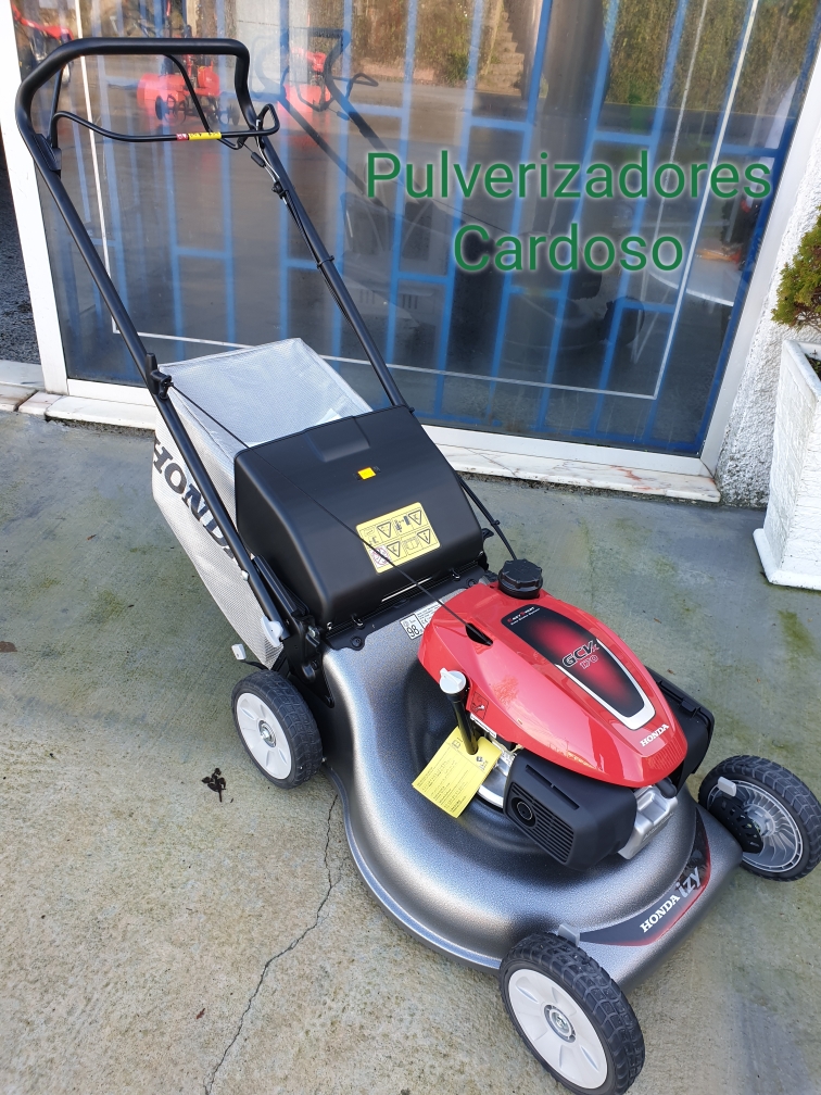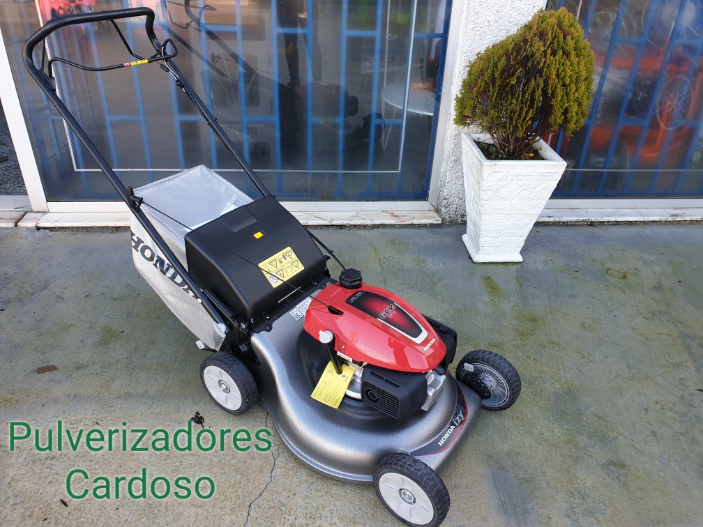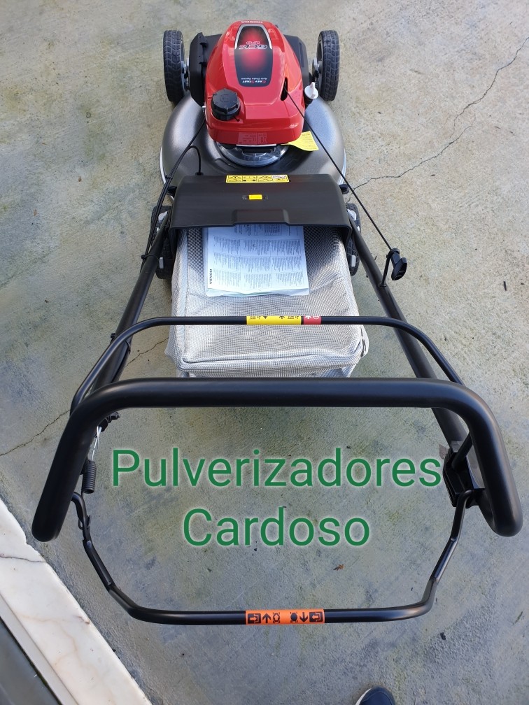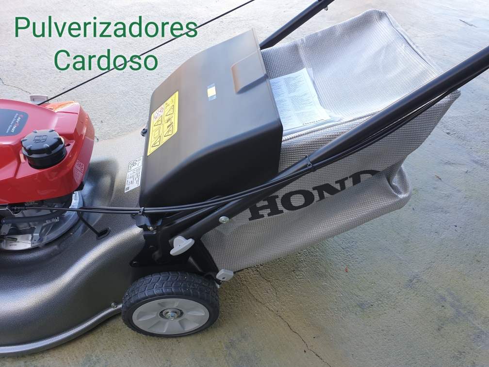 • Corta-relvas Honda com motor vermelho e saco coletor cinza