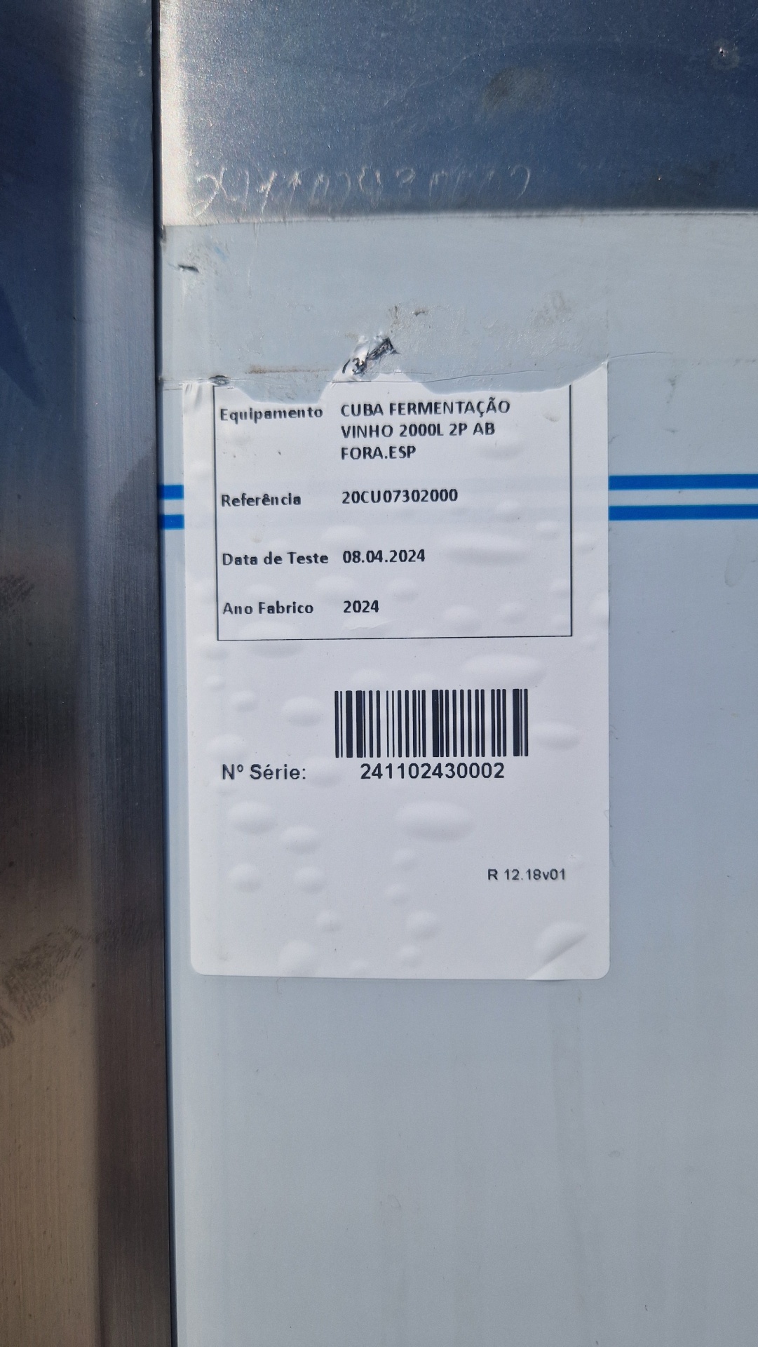 Cuba Inox Fermentação Vinho 2000 Litros 2 Portas 1.400,00 € Desconto de %. IVA incluído. Partilhar Comprar Contactar Cuba em Inox Capacidade: 2000 Litros Diâmetro: 125cm Altura: 230cm Inox: AISI304 Com 3 Pernas Com Válvula de Segurança Com Torneira de Prova Com Torneira de Saída 1" Com Passador de Trasfega 1 1/4" Com Tubo de Limpeza com Passador 1 1/4" Com Porta Lateral Abrir para Fora Com Porta Superior OFERTA TERMOMETRO