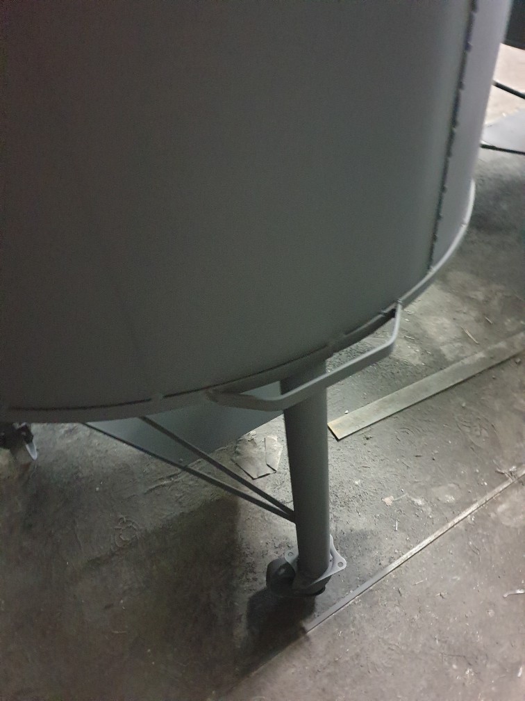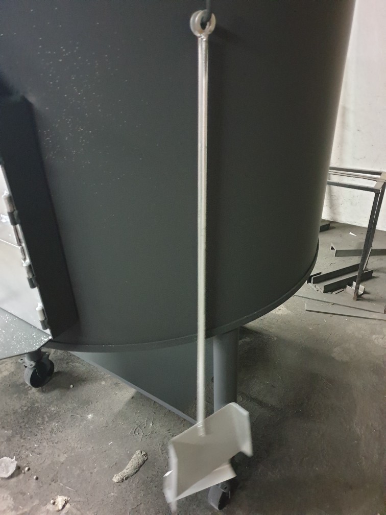 • Equipamento industrial cinzento com suporte metálico e rodízio
