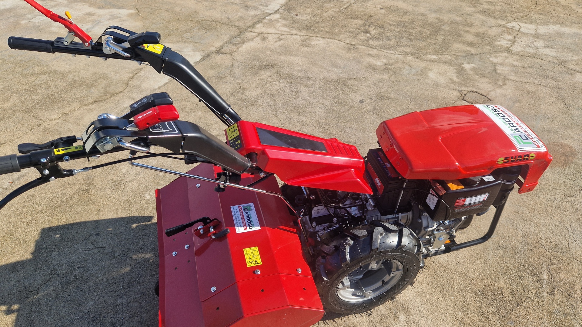 Motocultivador Roteco Diesel A.E. 2.500,00 € Desconto de %. IVA incluído. Partilhar Comprar Contactar Motocultivador com Frese Traseira para Uso Intensivo Marca: ROTECO Modelo: SVAR Motor: 10HP Gasoleo Arranque: Elétrico e Manual Frese: 80cm Rodas: 500.10 Velocidades: 3 Frente + 3 Tras Embraigem: Hidraúlica Travões: Sim Capô: Sim Regulação Altura Fresa Bloqueio/Desbloqueio Rodas Roda Transporte na Fresa Aparador Frontal Possibilidade de acoplar tambem pente de erva ou destrocedor de martelos Marca ROTECO Características