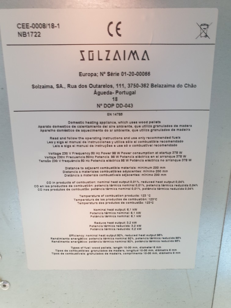 Salamandra Pellets SOLZAIMA 6.2KW Branca 900,00 € Desconto de %. IVA incluído. Partilhar Comprar Contactar SKU: 21210690 MARCA: Solzaima MODELO: Europa COR: Branca POTÊNCIA NOMINAL: 6.2 KW VOLUME AQUECIMENTO: 60 m2 CAPACIDADE DEPÓSITO: 11 KG DIÂMETRO CHAMINÉ: 80 mm