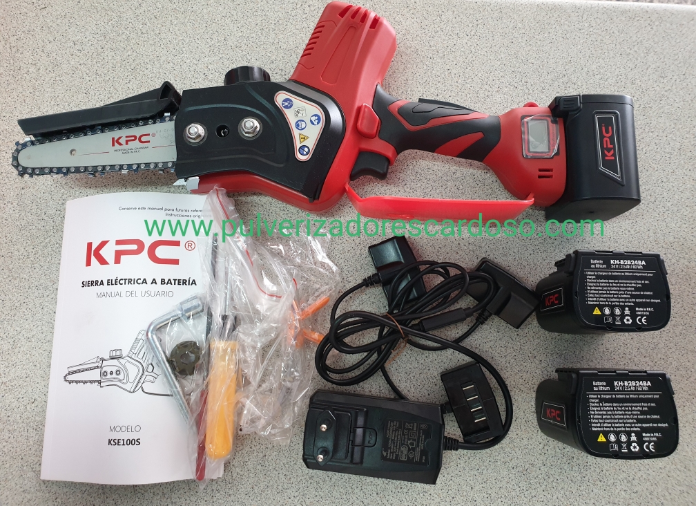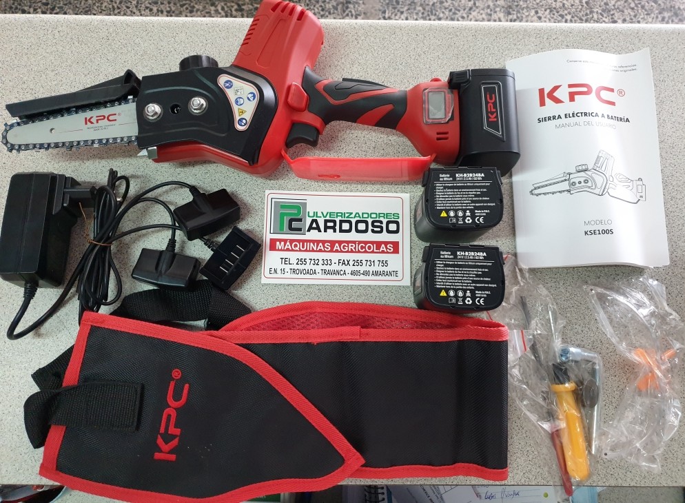 Serra Poda KPC KSE100S C/3 Baterias 600,00 € Desconto de %. IVA incluído. Partilhar O produto encontra-se sem stock. Serra de Poda a Bateria Marca: KPC Modelo: KSE100S Autonomia: 5-7 Horas (3 Baterias) Lamina: 4" 100mm Visor com Informação Bateria Deposito para Oleo Lubrificar Corrente Inclui: 3x Baterias Litio (3x 24V 2.5Ah) 1 Carregador Baterias (Carrega 3 Baterias em simultâneo) 1 KIt Acessorios (Lima + Chave + Oculos Protecção) 1 Caixa Rija para Transporte 1 Livro Instruções Marca KPC