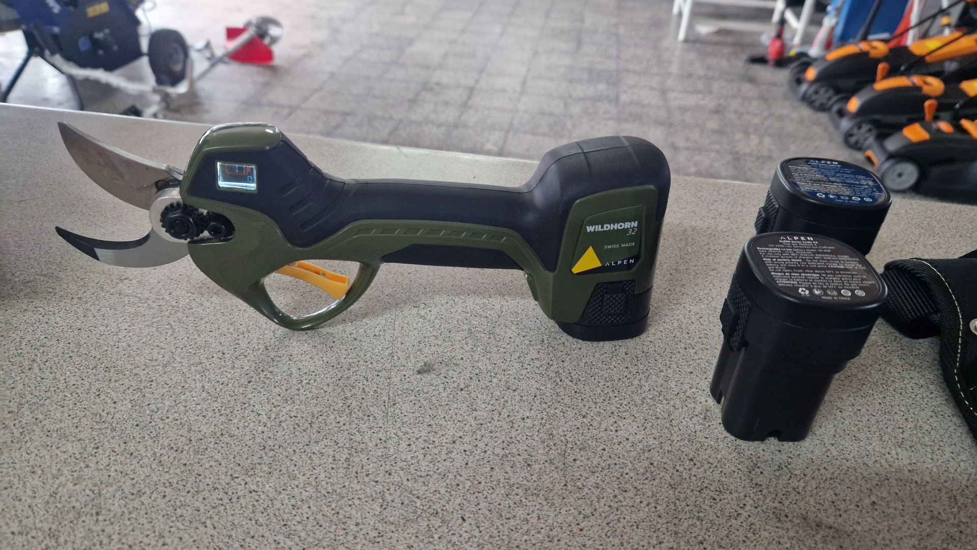 Tesoura ALPEN/FELCO 32 C/3 Baterias 450,00 € Desconto de %. IVA incluído. Partilhar Comprar Contactar Tesoura de Poda Com 3 Baterias Marca: ALPEN Modelo: Wildhorn 32 Diâmetro Corte: 32mm Laminas: HSS da FELCO Autonomía: Até 12 Horas (3 Baterias) Baterias: 14,4V 2.6Ah Tempo de Carga: 2 Horas Max. Corte Progressivo 2 Modos de Corte (abertura total ou meia abertura) Cabeça de corte Swiss Made fabricada pela FELCO Ligeira, Rápida e Potente Peso: 940g (bateria incluida) Garantia: 2 Anos para Profissionais Fabricado na Suiça Inclui: 3x Baterias Litio 1x Carregador de 3 Vias 1x Bolsa de Cintura 1x Kit com 10 Ferramentas e Acessórios 1x Mala de Transporte 1x Manual Instruções Disponivel: * video de demonstração Marca ALPEN Características