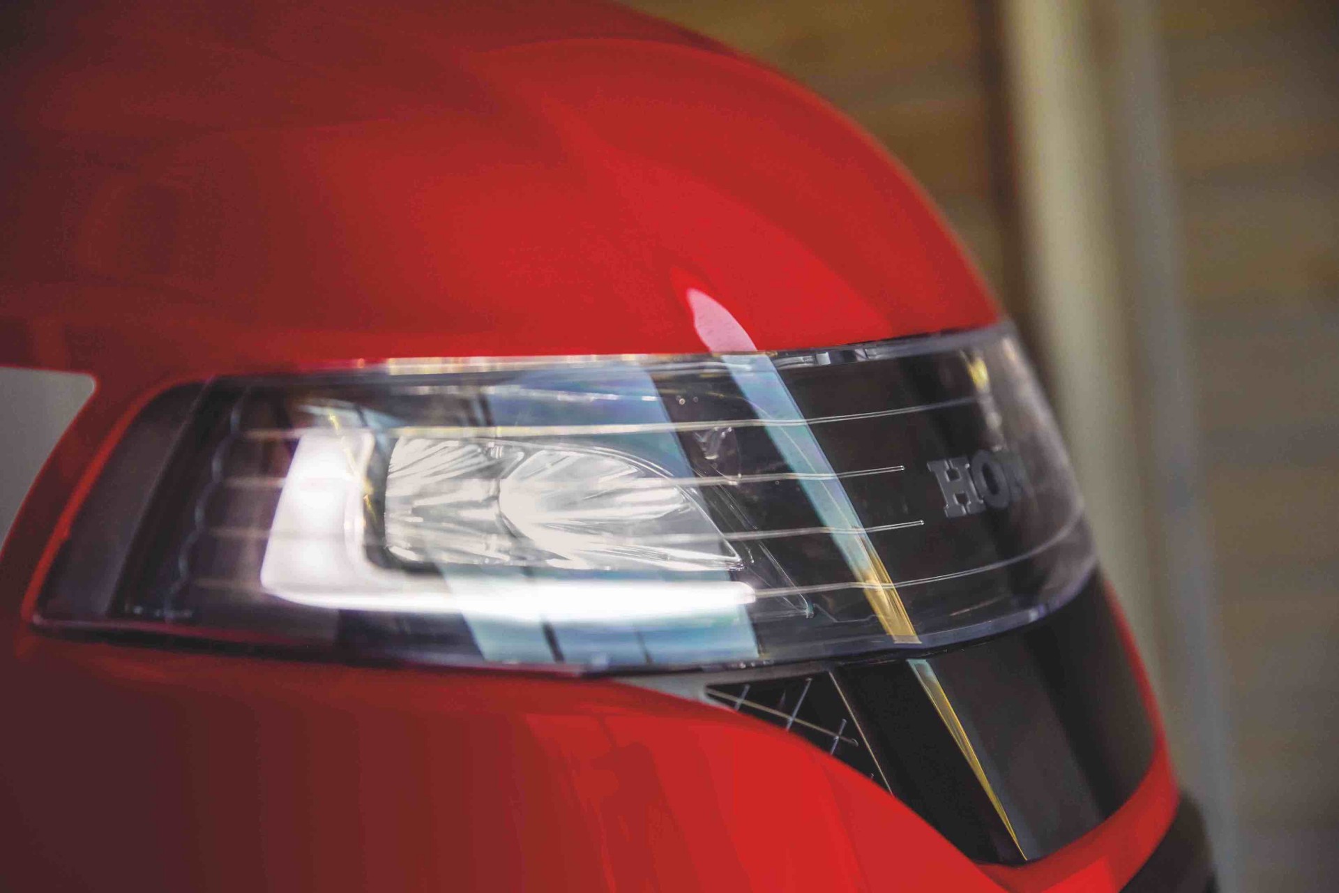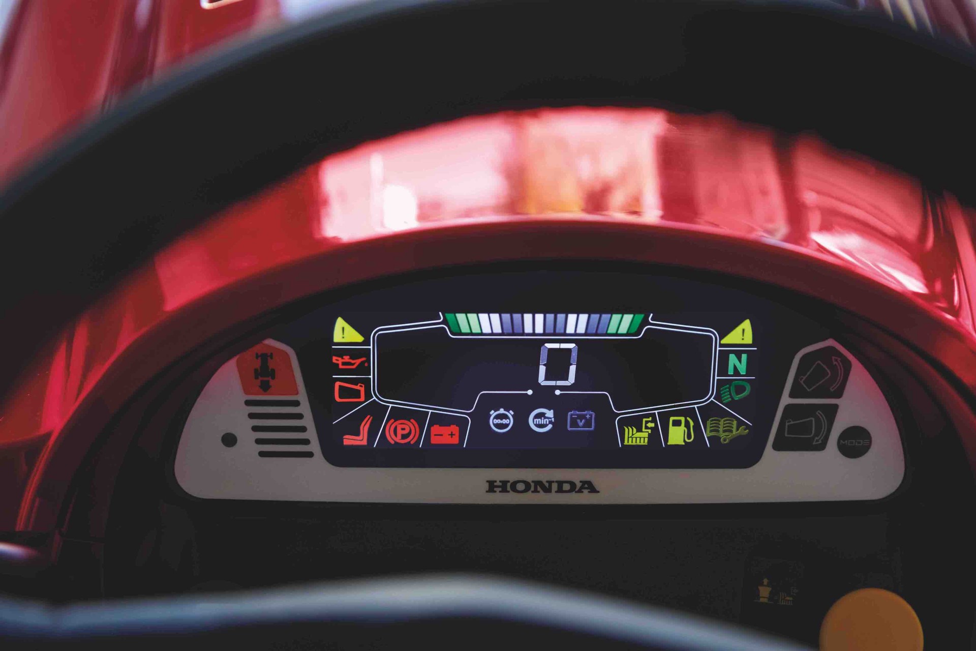 • Painel de instrumentos digital da Honda com luzes indicadoras coloridas em moldura vermelha